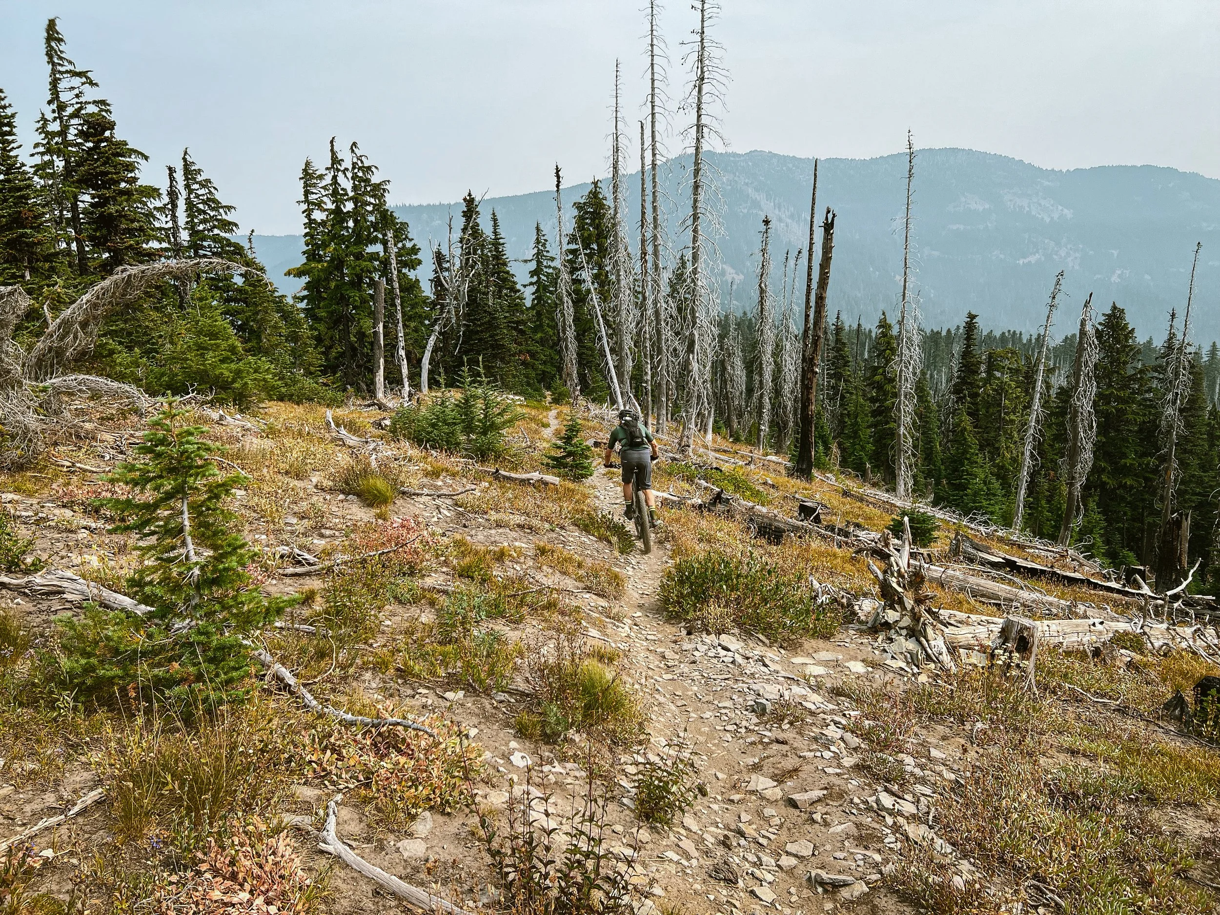 Because Gunsight Butte is a short, point-to-point backcountry trail, it makes the most sense built into a larger ride within the 44 Trails network. Some folks like to shuttle from Bennett Pass to popular descents like Dog River or Surveyor’s Ridge. My preference is generally to loop it into a bigger backcountry mountain bike day via one of four configurations presented in this collection. Each has its own distinct flavor and flow. One starts by climbing Dog River for a gradual ascent into the 44. Another drops Cooks Meadows to Dog River to climb the highly underrated East Fork Trail. The third traverses Lookout Mountain, Cedar Creek, and Fifteenmile. The fourth begins at Pocket Creek Sno Park, climbs past the start of Gunsight and heads south for a big loop through the Boulder Creek drainage before returning to finish with Gunsight and Gumjuwac Trails.